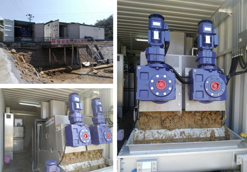 閉じ込められていない渦巻き脱水プレスのための自身の利点に加えて、限られたフットプリントとコンパクトな構造のために、臭いなどは、車体のねじが自由に動くための車両の穴に固着することができます。敷地内のスラッジ処理に便利です。